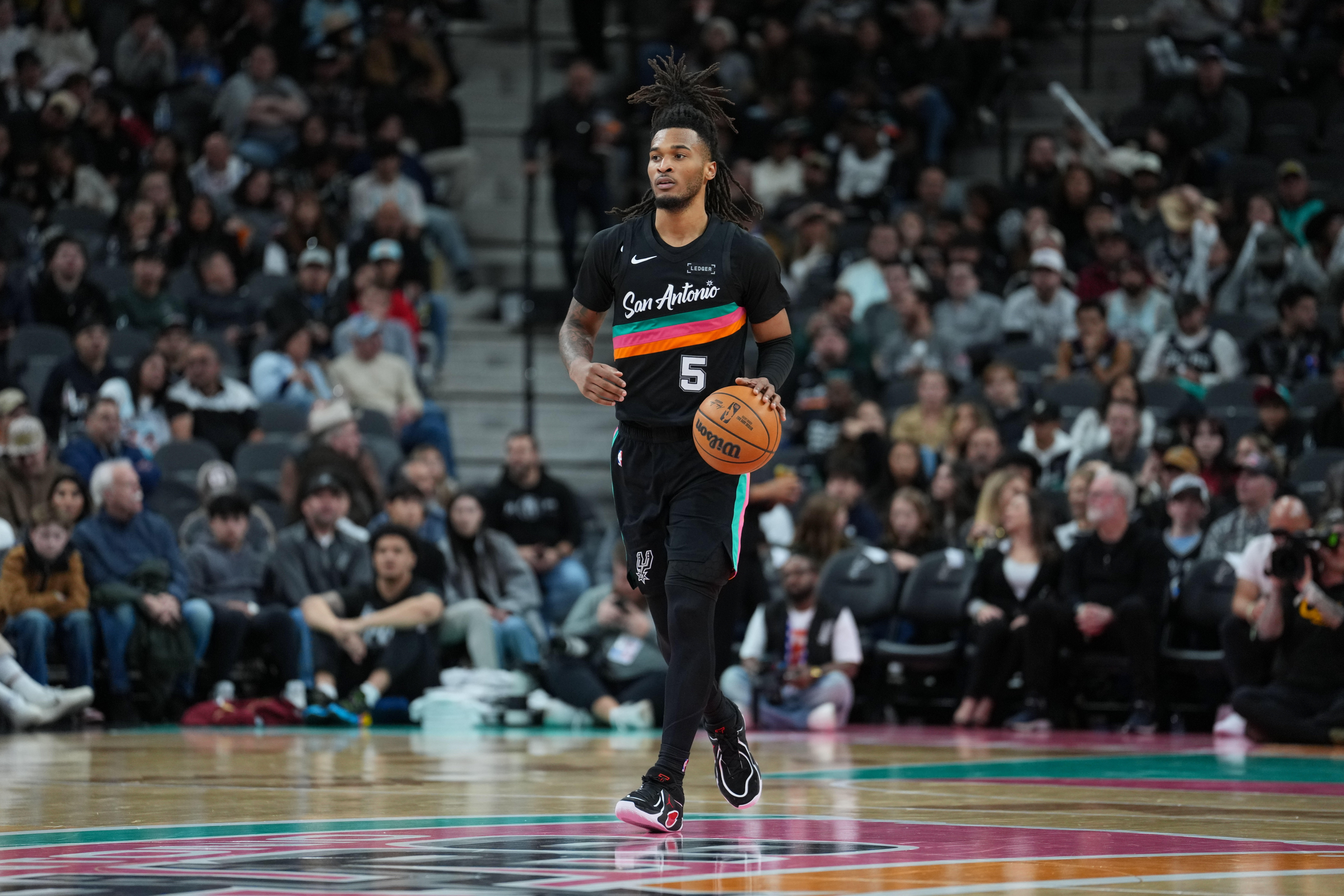 上一場牛馬主題,是文班vs弗拉格的修長遠(yuǎn)射vs肩扛強(qiáng)投狀元對決。今天卡斯?fàn)枈Z了雙狀元的光芒。招牌的“反擊如韋德、陣地如霍勒迪”烈火燎原不提,今天妙在:卡斯?fàn)柲孟?0分三雙,但依然是個副持球或者移動組織者M(jìn)ovement Ball Handlers,而非盧卡坎寧安式持球核。
