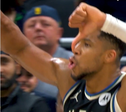 字母哥慶祝,恩怨局,對(duì)著步行者球迷比