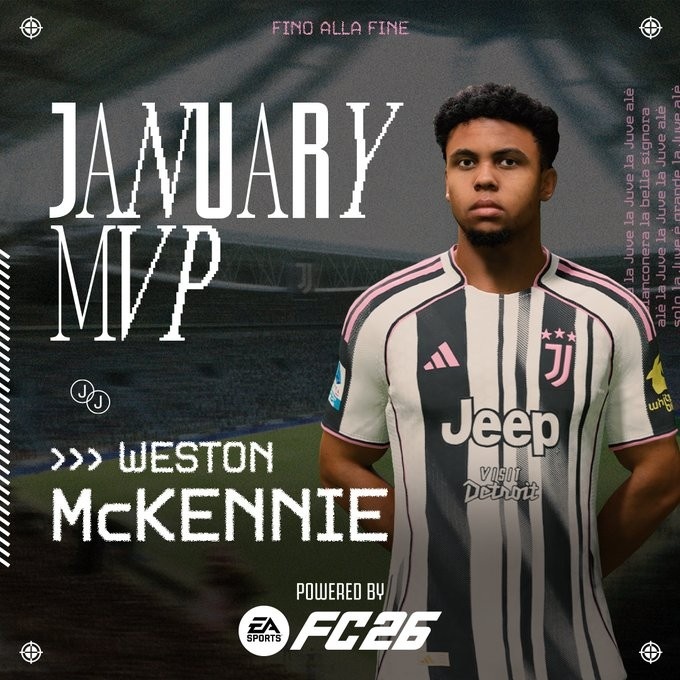 2月4日訊 尤文圖斯官方消息,麥肯尼被評為一月最佳球員。