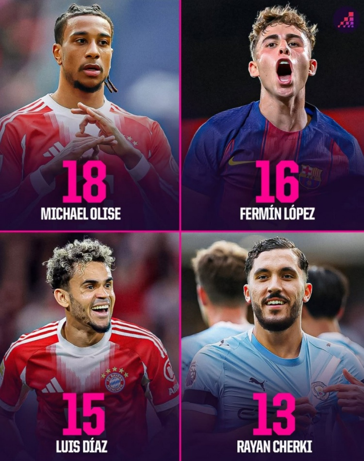 4月6日訊 數(shù)據(jù)網(wǎng)站OPTA盤點了本賽季五大聯(lián)賽球員在各項賽事運動戰(zhàn)中助攻榜,具體如下:奧利塞(拜仁)18球費爾明(巴薩)16球路易斯·迪亞斯(拜仁)15球謝爾基(曼城)13球
