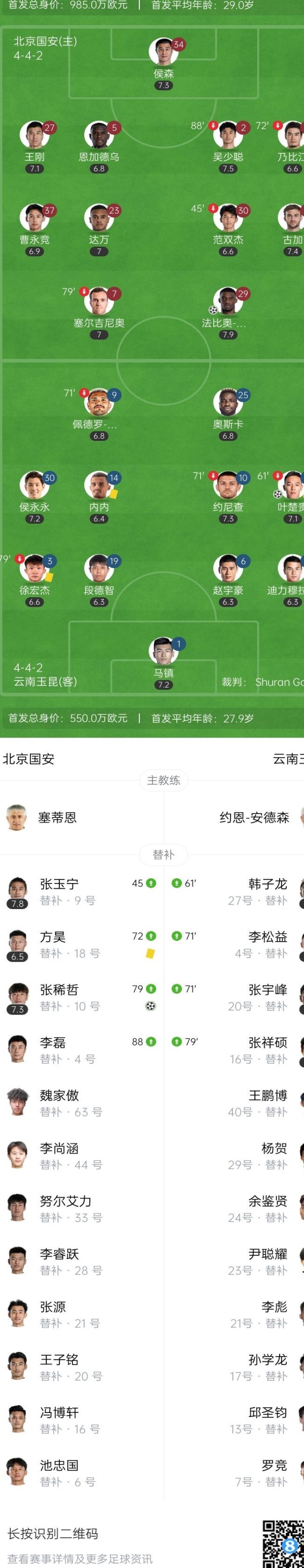 6月30日訊 北京時(shí)間19:35,中超第16輪北京國安vs云南玉昆,比賽在北京工人體育場打響!上半場,葉楚貴幫助客場作戰(zhàn)的云南玉昆取得領(lǐng)先!法比奧禁區(qū)倒地獲得點(diǎn)球,隨后被VAR取消!下半場,張玉寧頭球擺渡,阿布雷烏扳平比分!張玉寧隨后又制造點(diǎn)球!張稀哲主罰命中!
