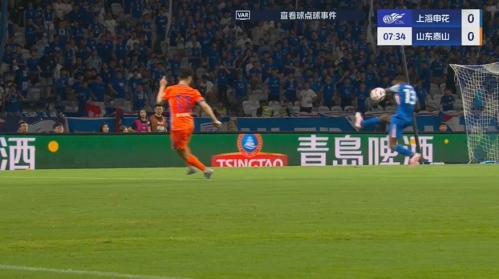 比賽第6分鐘,泰山球員投訴馬納法防守時手球,VAR檢查后確認(rèn)沒有犯規(guī),裁判示意比賽繼續(xù)。