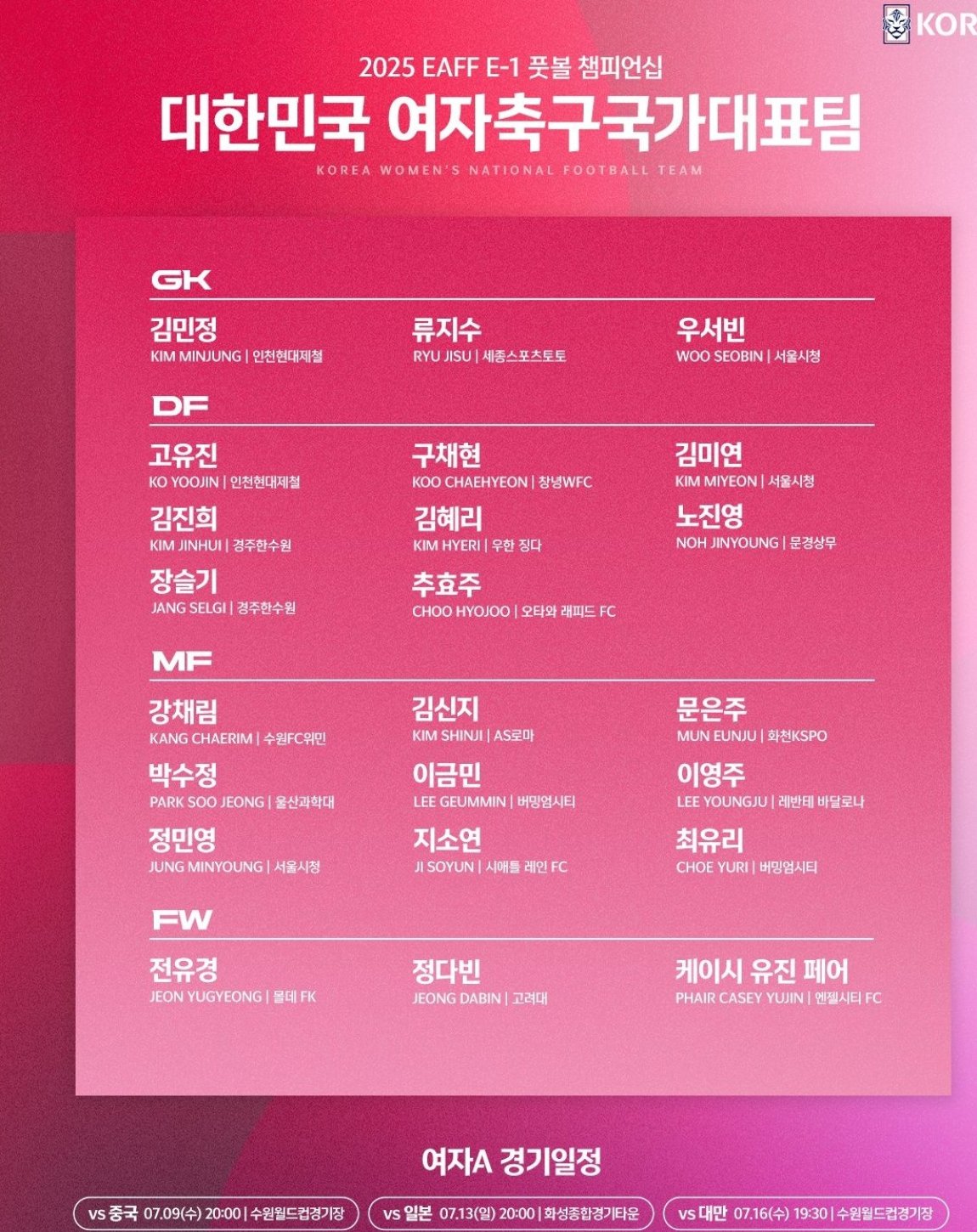 首戰(zhàn)中國(guó)隊(duì)!韓國(guó)女足東亞杯名單:9位旅外球員+12位本土聯(lián)賽球員 首戰(zhàn)中國(guó)隊(duì)!韓國(guó)女足東亞杯名單:9位旅外球員+12位本土聯(lián)賽球員 2025-06-24