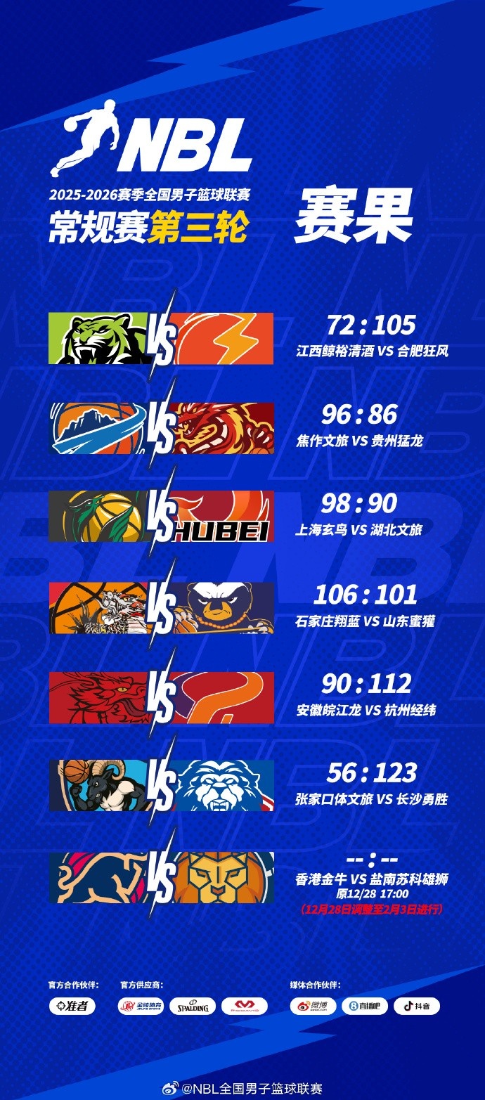 NBL今日戰(zhàn)報(bào):石家莊翔藍(lán)險(xiǎn)勝山東蜜獾 張家口體文旅不敵長(zhǎng)沙勇勝 NBL今日戰(zhàn)報(bào):石家莊翔藍(lán)險(xiǎn)勝山東蜜獾 張家口體文旅不敵長(zhǎng)沙勇勝 2025-12-28