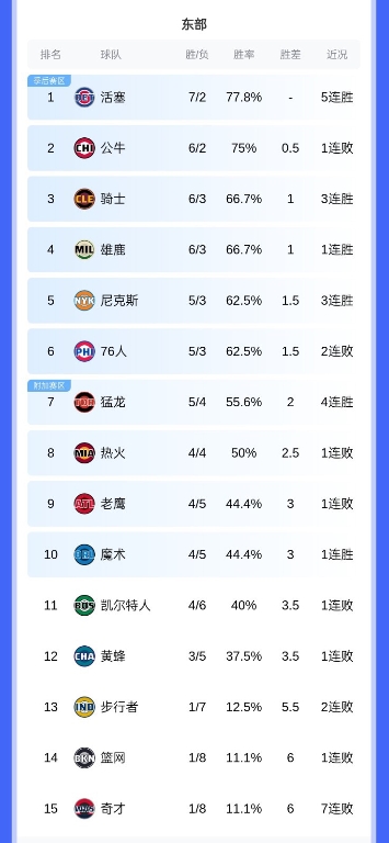 在拿下籃網(wǎng)之后,活塞的戰(zhàn)績來到7勝2負(fù),超越公牛(6勝2負(fù))升至東部榜首。