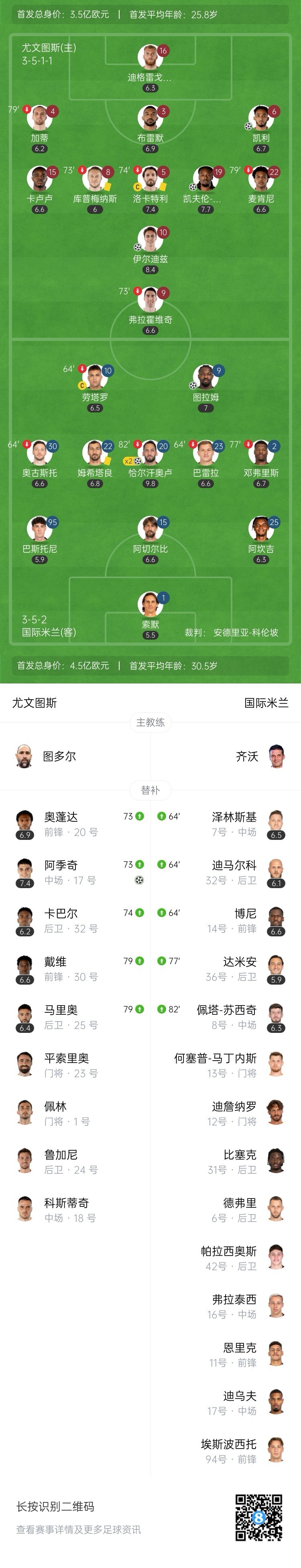 本場比賽尤文的首發(fā)平均25.8歲,傳射的伊爾迪茲僅20歲、進(jìn)球的K-圖拉姆24歲+凱利26歲、絕殺的替補(bǔ)小將阿季奇更是只有19歲。