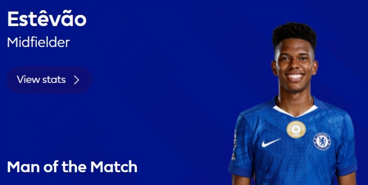 傳射建功,英超官方:埃斯特旺當(dāng)選切爾西3-1水晶宮全場(chǎng)最佳球員