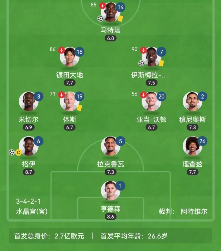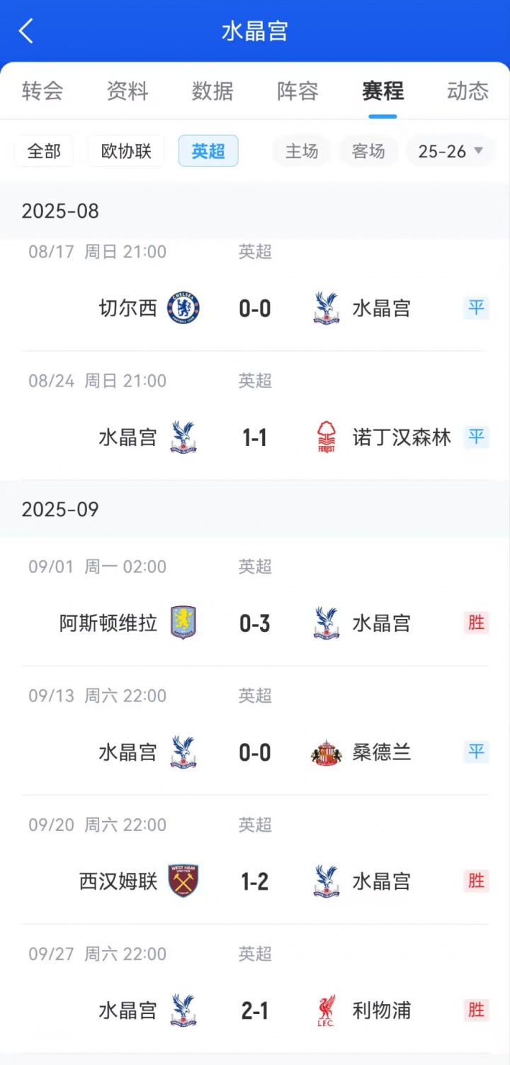 英超第5輪,水晶宮客場2-1西漢姆聯(lián)