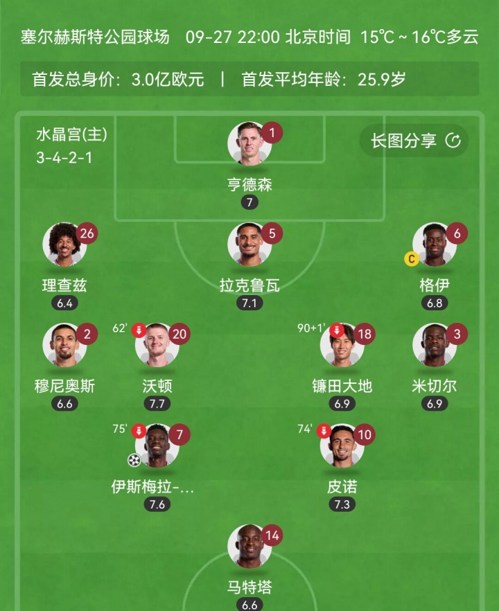 英超開賽以來3勝3平不敗高居第2!水晶宮的這套3421,真有說法!